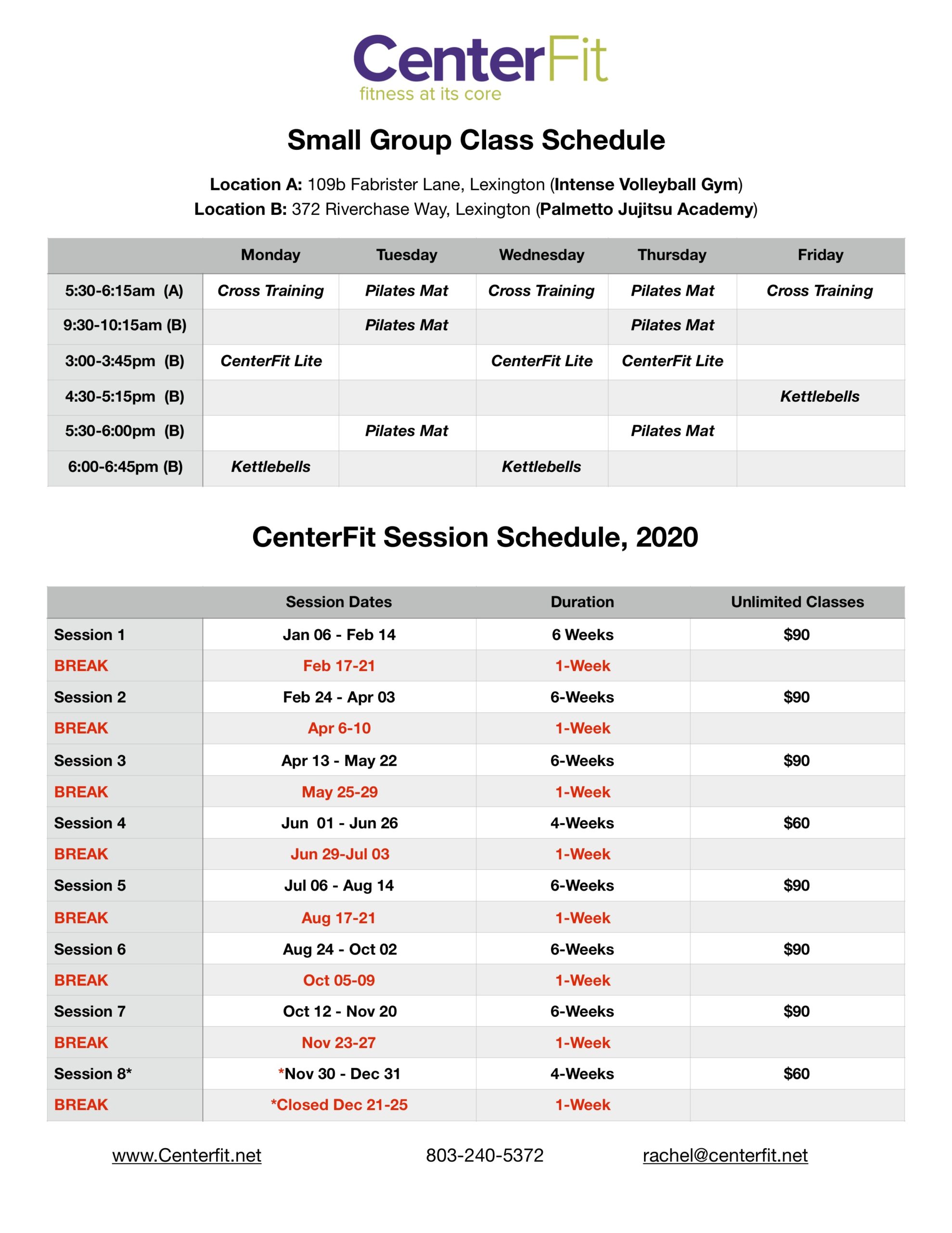 Class & Session Schedule